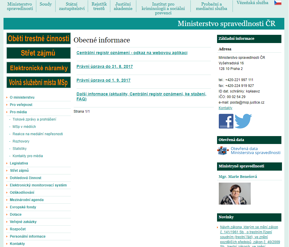 Základní informace mohou občané stále najít na adrese portal.justice.cz, který na rozdíl od Justice.cz stále z nějakého bizarního důvodu funguje, ale nabízí poměrně staré informace. Podle něj je například stále ministryní spravedlnosti Marie Benešová.
