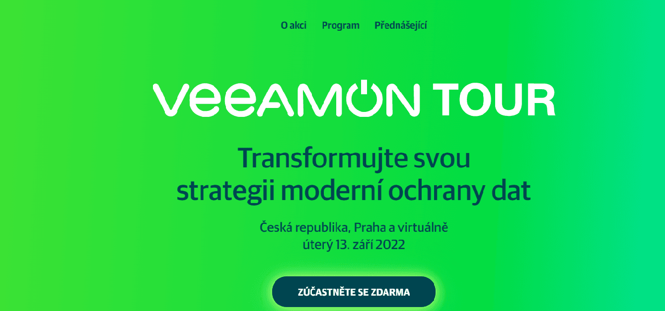 Transformujte svou strategii moderní ochrany dat se společností Veeam na jejím výroční setkání s partnery a zákazníky VeeamOn Tour 2022 13. září.