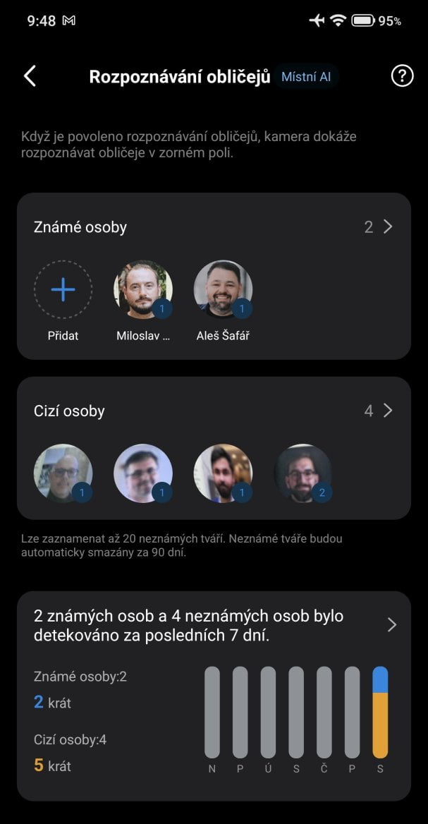 Model C665G má také rozšíření s možnosti analýzy obrazu. Veškeré zpracování probíhá uvnitř a nic se neposílá ke zpracování do cloudu. Jde o významné rozšíření fungování kamery, protože dovoluje identifikaci jednotlivých osob. A ty je pak možné rozdělit do několika kategorií, jako je např. člen rodiny, kolega, známá osoba. Kamera pak dokáže osobu identifikovat a může následovat požadovaná akce. Třeba po příchodu člena rodiny domů se zapne osvětlení nebo se kamera přepne do privátního režimu a vypne záznam. Ale chytrých funkcí může být mnohem víc a záleží na vybavení domácnosti chytrými prvky. Navíc se rozpoznáváním osob předejde falešným poplachům.