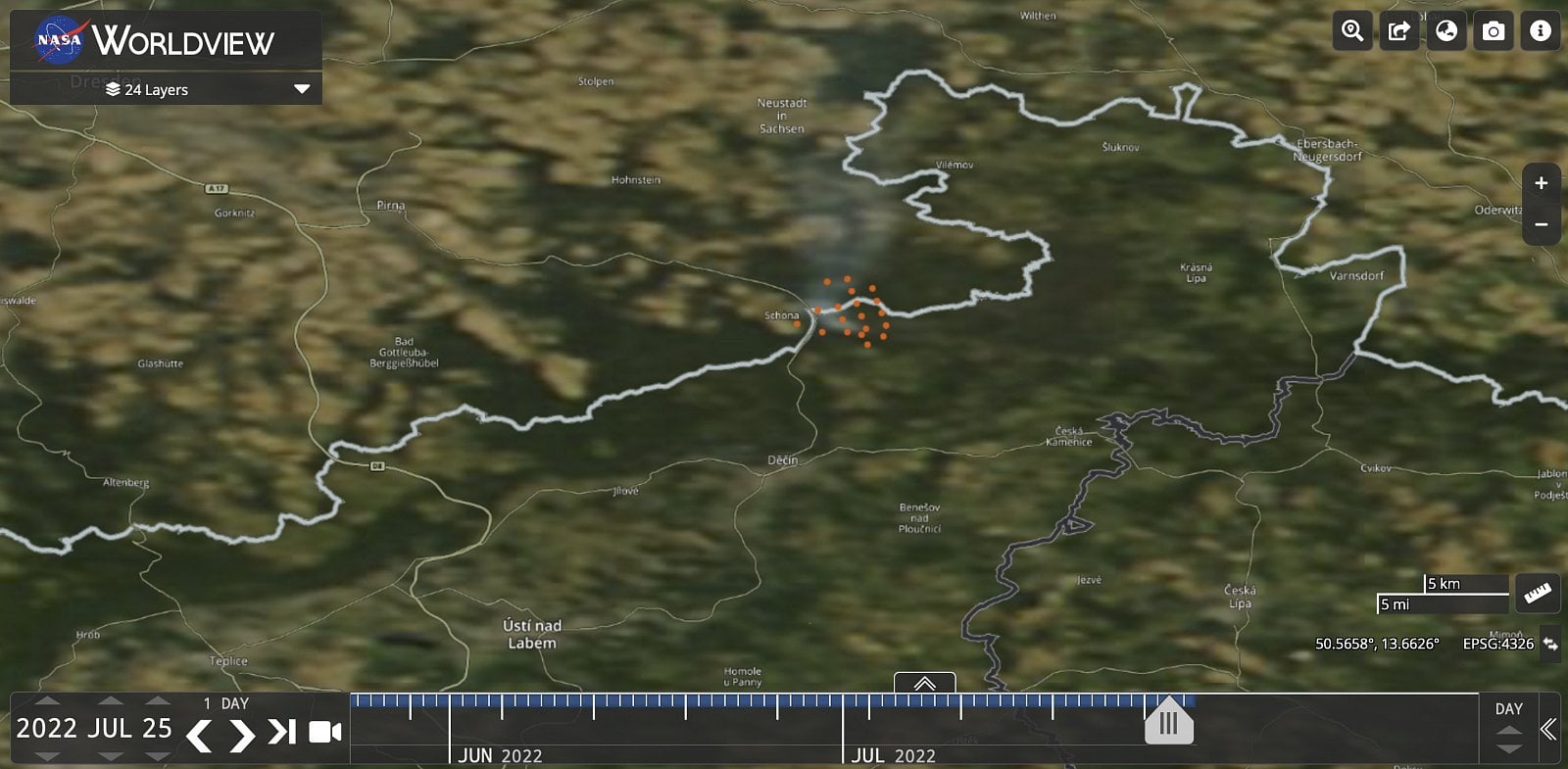 Situaci v okolí známé Pravčické brány zaznamenaly pochopitelně i družice a na výstupy některých z nich se můžete podívat i vy. Pochopitelně nepočítejte s detailními záběry, zas tak dokonalá ještě technika není. Některé mají logicky i zpoždění. Přesto ukazují, jak velkou plochu oheň poškodil.