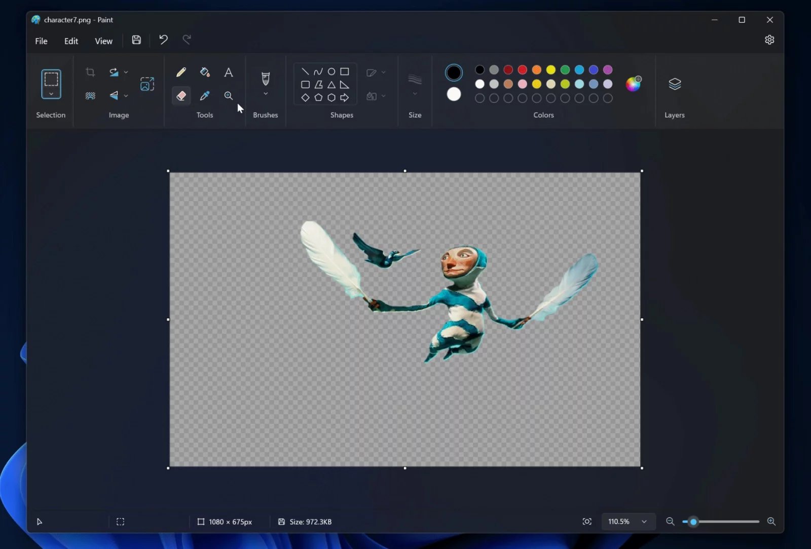 Zajímavou novinkou v nové verzi malování je odstranění pozadí a uložení v transparentním režimu